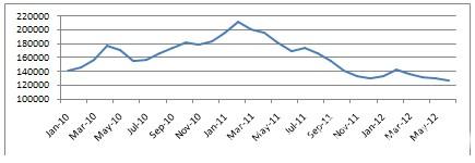 第一個原因,鈷酸鋰2012年上半年價格跌破20萬元/噸(圖2),這種價位使得數(shù)碼電池對正極材料的價格敏感性下降,尤其是隨著鈷酸鋰價格逐步下降,部分鋰電池廠家改變原來計劃轉而采購鈷酸鋰作為正極材料。面對這種情況,一些三元廠家也開始生產(chǎn)三元材料摻鈷酸鋰的產(chǎn)品,如今年寧波金和的產(chǎn)量增長動力主要來自于ATL三元材料摻鈷酸鋰的訂單;這種產(chǎn)品的主要競爭力在于很好地解決了三元材料原來存在壓實密度低的問題,但是成本并沒有提升很多。