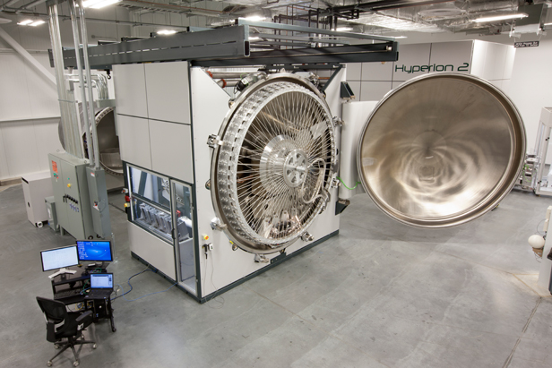 加快太陽能發(fā)電:雙溪公司的海曝離3(Hyperion 3)是離子加速器,用氫離子轟擊硅板,產生非常薄的太陽能硅片,用于太陽能電池。硅板排列在所說結構的外圍,離子撞擊晶圓時,這些結構會旋轉。來源:麻省理工科技創(chuàng)業(yè)
