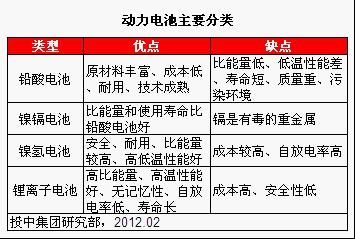 面對全球范圍日益嚴峻的能源形勢和環(huán)保壓力,世界各國在戰(zhàn)略上越來越重視能源安全和環(huán)境保護,新能源汽車由于其能源清潔、無污染排放等優(yōu)勢從概念走向產(chǎn)業(yè)蓬勃發(fā)展起來。新能源汽車包括混合動力汽車(HEV)、插電式混合動力汽車(PHEV)和純電動汽車(EV)。動力電池作為新能源汽車的動力來源,是其最核心、利潤最豐厚的的環(huán)節(jié),可以說動力電池的性能和成本直接決定了新能源汽車的發(fā)展路線。因此,隨著新能源汽車的發(fā)展,動力電池也迎來了較好的投資機會。動力電池主要可以分為鉛酸電池、鎳鎘電池、鎳氫電池和鋰電池,各類電池優(yōu)缺點見表1所示。