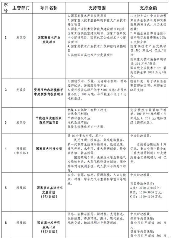 我國(guó)政府一直以來(lái)大力支持高新科技與新型產(chǎn)業(yè)的發(fā)展。國(guó)家每年以政府計(jì)劃項(xiàng)目的方式直接投入到企業(yè)的科研、生產(chǎn)以及產(chǎn)業(yè)化的過(guò)程中去。國(guó)家發(fā)改委、科技部、財(cái)政部等部門(mén)每年均提供針對(duì)不同企業(yè)不同發(fā)展階段的各種資助。其中涉及儲(chǔ)能及相關(guān)領(lǐng)域的項(xiàng)目如下: