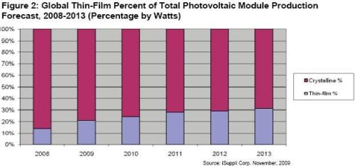 盡管去年多晶硅的合同價格下挫逾50%,但薄膜太陽能模塊市場前景依然樂觀。iSuppli公司預(yù)測,到2013年,薄膜光伏太陽能模塊將占到整體模塊市場的30%以上,2008年該比例為14%。