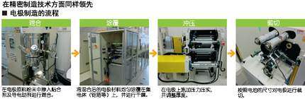 并且,電極是將原料粉末與用來粘合粉末的粘合劑化學(xué)品進(jìn)行混合,涂覆在集電體(鋁箔及銅箔)上制造而成。鋰離子電池所用的粘合劑需要與電極原料粉末之間具有微妙的兼容性,吳羽公司(KUREHA)及日本瑞翁公司(Zeon)等日本化工企業(yè)幾乎壟斷了其生產(chǎn)。