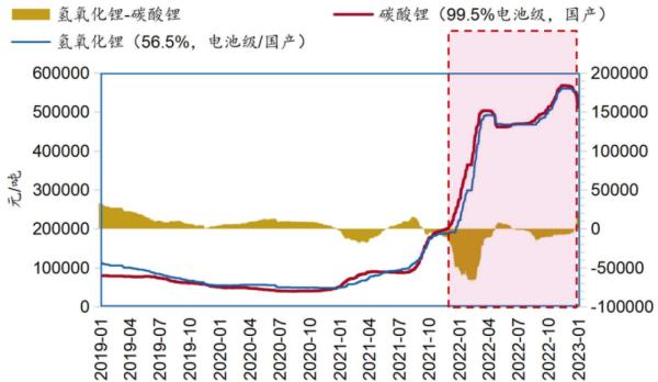 可以看到,在當(dāng)初簽訂合同的2022年2月9日,碳酸鋰價格在當(dāng)年元旦站上30萬元/噸之后開啟跳漲模式,2月中旬沖上40萬元/噸,并在3月初突破50萬元/噸大關(guān),較年初上漲近7成。對比2021年年初5.5萬元/噸的低價更是直接暴漲8倍,漲幅高達809%。2022年11月底,碳酸鋰價格更是漲到了58萬元/噸的歷史最高位點。