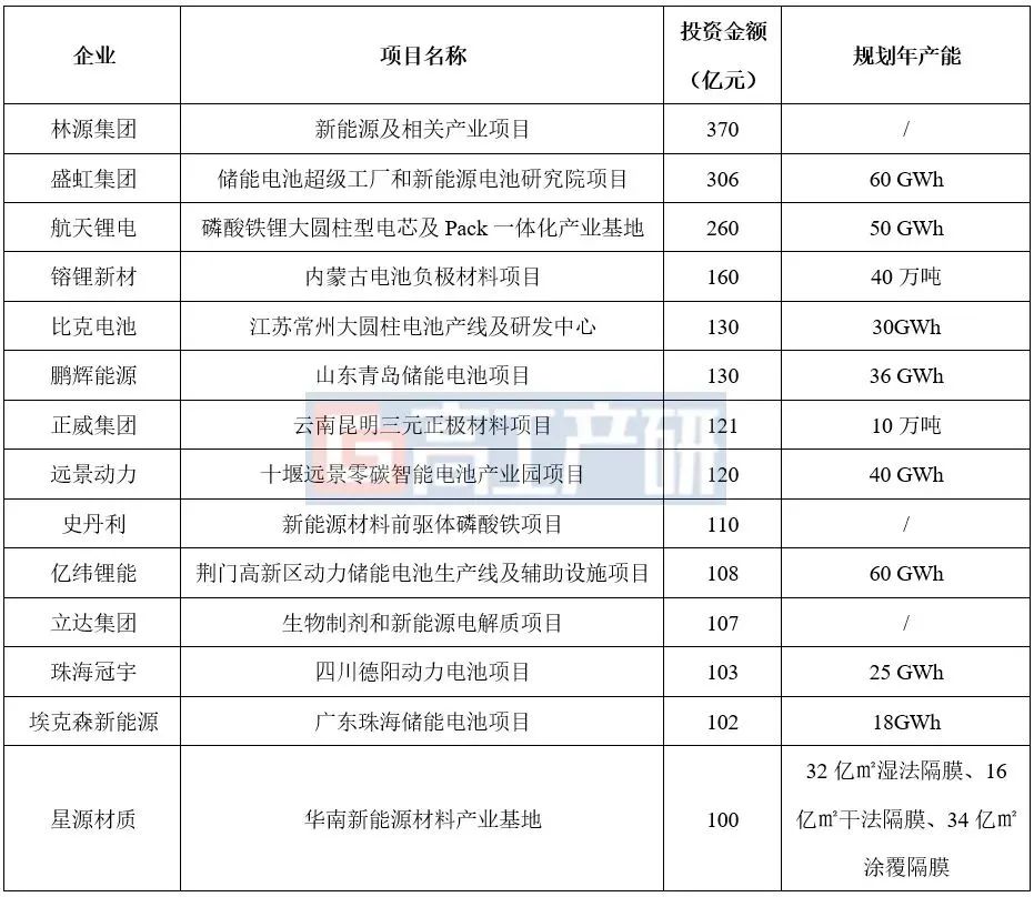 2023年1-5月中國鋰電產(chǎn)業(yè)部分百億投資項目列表