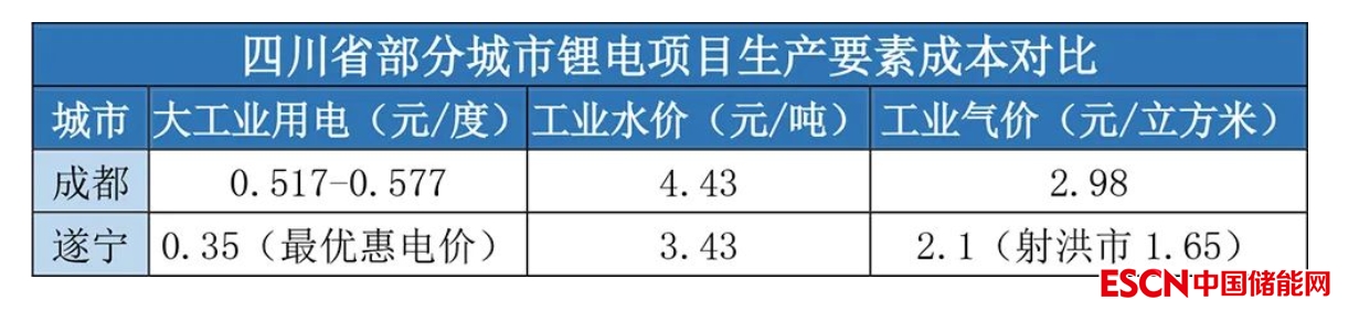 除了上游資源可合理調(diào)配,遂寧其他生產(chǎn)要素成本優(yōu)勢也較為明顯: