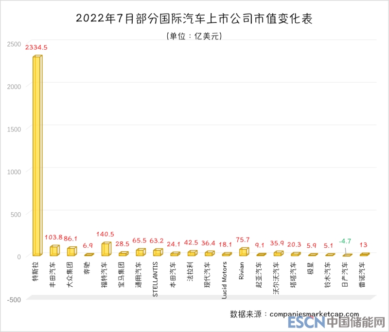 “普漲”成為7月海外新能源概念股的特征。此前,受疫情、俄烏沖突、供應鏈不穩(wěn)定等情況影響,國際車企今年上半年在資本市場表現(xiàn)不佳,但進入下半年,海外新能源概念股整體反彈。7月,特斯拉市值增加最多,增加了2334.5億美元;6月底在美上市的極星(PSNY,股價8.59美元,市值181.2億美元)7月市值微增5.9億美元。