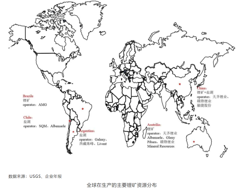 全球在生產(chǎn)的主要鋰礦資源分布