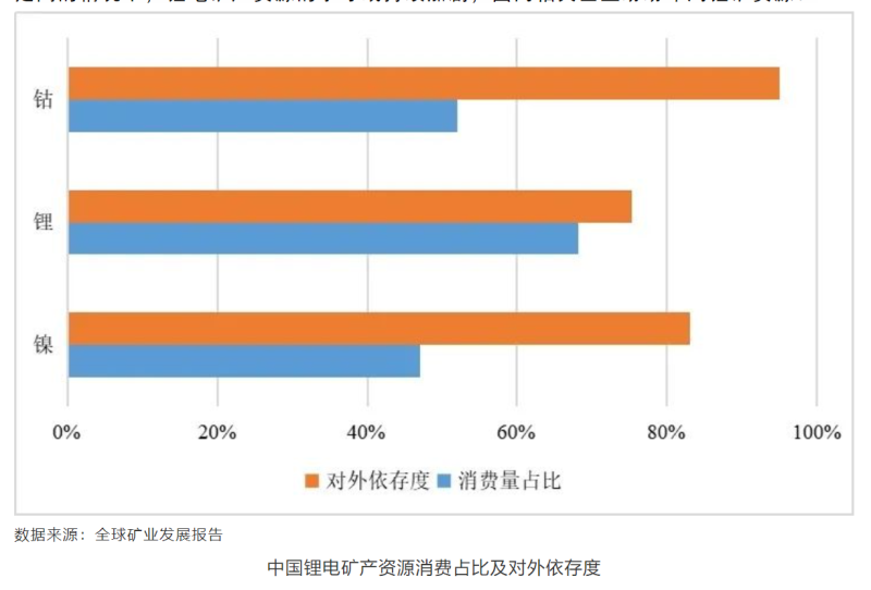 中國(guó)鋰電礦產(chǎn)資源消費(fèi)占比及對(duì)外依存度