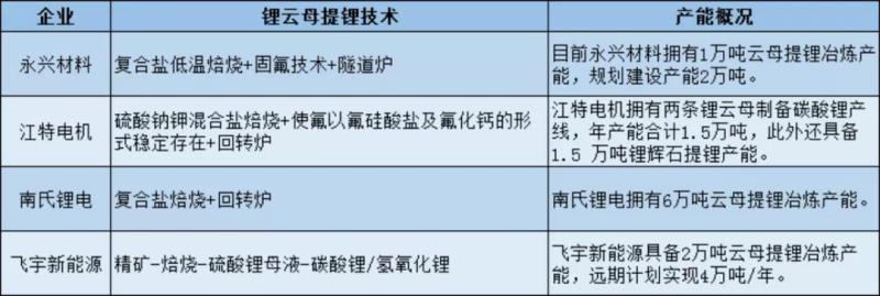 云母提鋰方面,國(guó)內(nèi)云母提鋰出貨量集中在4 家江西企業(yè),包括永興材料、江特電機(jī)(銀鋰新能源)、飛宇新能源、南氏鋰電等。