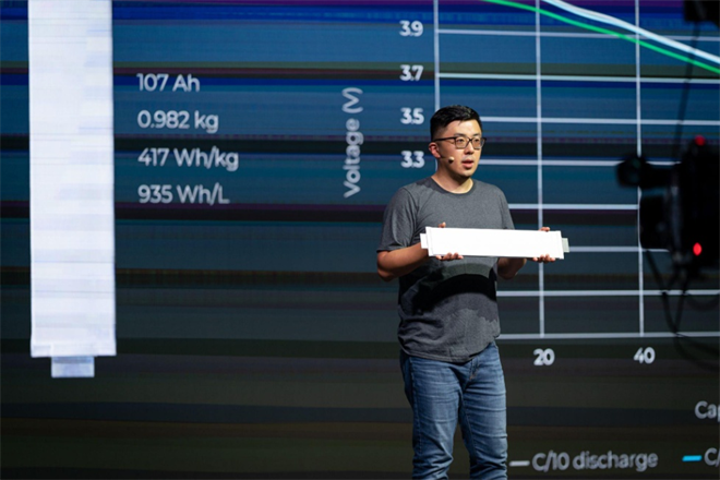 SES創(chuàng)始人兼CEO胡啟朝展示Apollo?大電芯