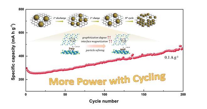更重要的是,研究人員將電化學(xué)研究和原位電子顯微鏡表征分析結(jié)合起來,確定了一種獨(dú)特的顆粒細(xì)化機(jī)制,可在循環(huán)過程中誘導(dǎo)容量增加,這種容量增強(qiáng)效果在小電流下更加明顯。