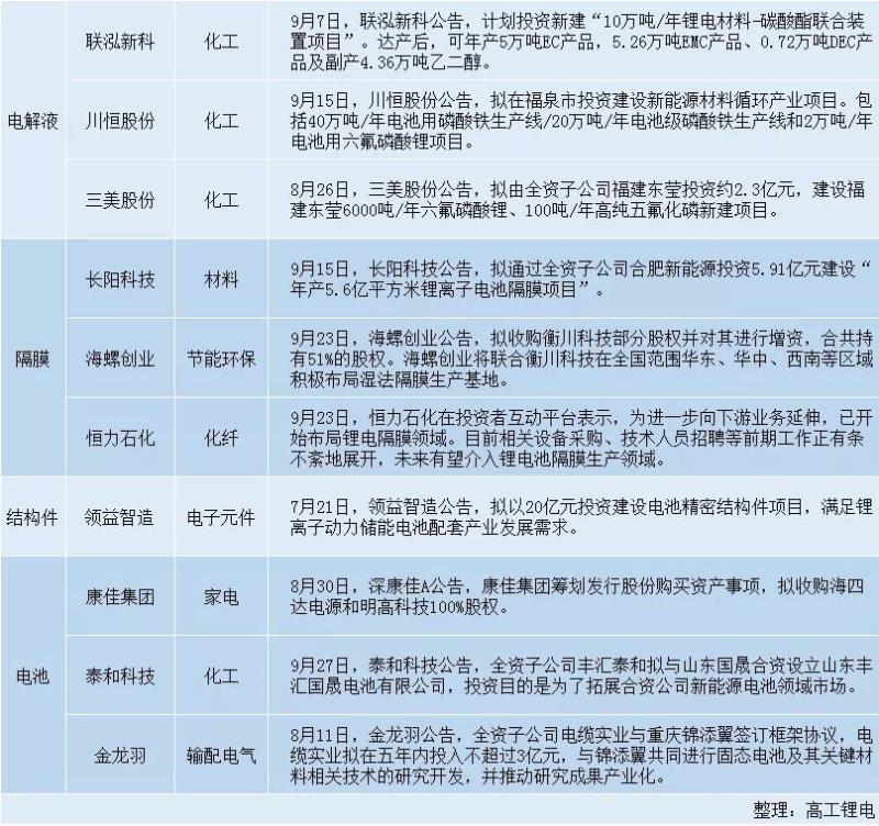以下是高工鋰電梳理的下半年以來的企業(yè)跨界布局鋰電行業(yè)情況:
