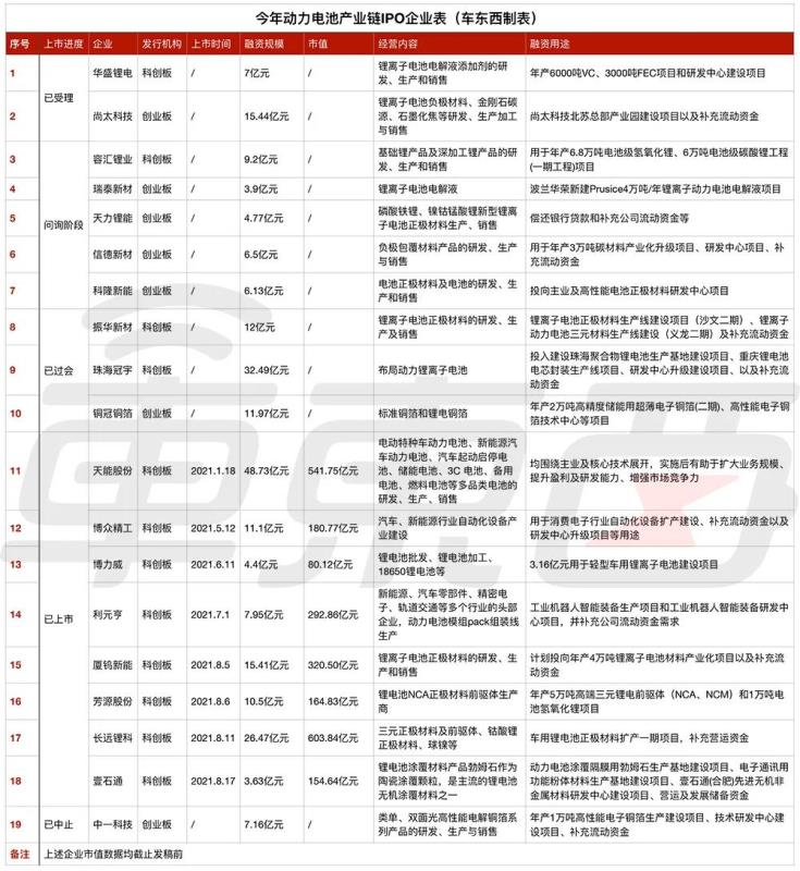 19家企業(yè)選擇上市 涵蓋動(dòng)力電池全產(chǎn)業(yè)鏈