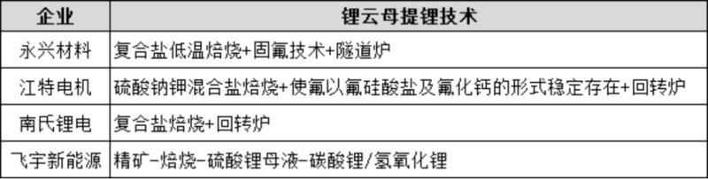 高工鋰電了解到,目前包括永興材料、江特電機(jī)、南氏鋰電主要采用復(fù)合鹽低溫焙燒法,飛宇新能源則是采用鋰云母礦高溫焙燒,通過制成鋰母液制備碳酸鋰。