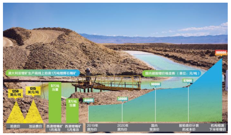 這場拍賣極為火爆,在3小時(shí)的拍賣里,各方共進(jìn)行了62次競拍,其中17名競拍者“興趣強(qiáng)烈”。最終這批鋰輝石精礦拍賣價(jià)被抬到1250美元/噸,加上運(yùn)費(fèi)到國內(nèi)價(jià)格為1315美元/噸,創(chuàng)下歷史新高。若按這一拍賣價(jià)計(jì)算,碳酸鋰成本將會(huì)超過9.7萬美元/噸,遠(yuǎn)遠(yuǎn)超過約9萬美元/噸的現(xiàn)貨價(jià)格。