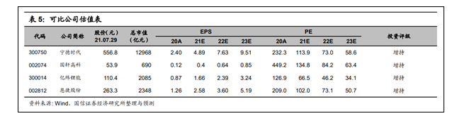 國信證券對寧德時代相關(guān)數(shù)據(jù)的預(yù)測
