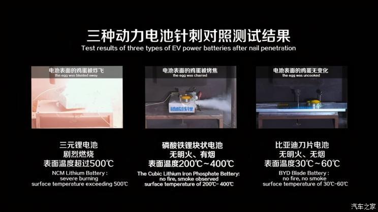 接下來(lái)比亞迪唱主角的大戲拉開(kāi)帷幕,比亞迪的刀片電池屬于磷酸鐵鋰電池,從娘胎里安全性就比三元鋰電池好,那么三元鋰電池自然成為了比亞迪宣傳自己的背景板。2020年比亞迪公開(kāi)進(jìn)行三元鋰電池和刀片電池的穿刺實(shí)驗(yàn),一定程度上證明了刀片電池的安全性。
