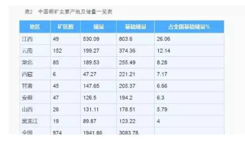 目前,江西銅礦儲量占全國總儲量的五分之一,工業(yè)儲量占全國儲量的三分之一,江西省銅礦儲量大,埋藏淺,易采易選,開采時能同時回收多種伴生礦產(chǎn),經(jīng)濟(jì)效益十分顯著。江西省銅礦石產(chǎn)量約占全國銅礦石總產(chǎn)量的一半以上。