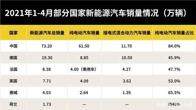 1-4月,我國純電動(dòng)乘用車車銷售占比高達(dá)84%,或許你已是習(xí)以為常,但橫向?qū)Ρ纫幌?,德國、法國、荷蘭三家全球電動(dòng)車主要市場中,PHEV依舊霸占著統(tǒng)治地位,即使是推崇環(huán)保理念的荷蘭,BEV車型的銷量占比也僅僅達(dá)到65.5%。