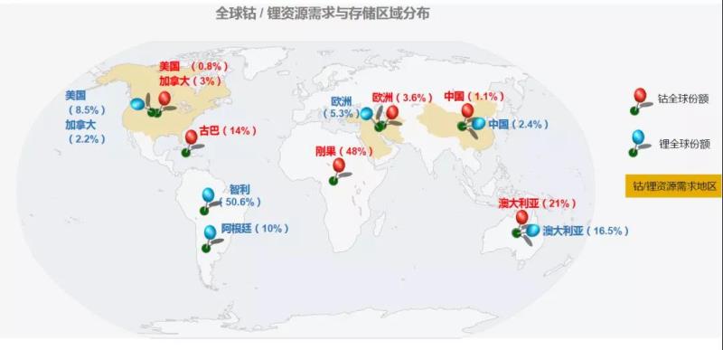 一方面,鈷鋰戰(zhàn)略資源供需分離,原材料端受制于人。鋰離子電池將逐漸成為大宗商品,鋰鈷等金屬則成為戰(zhàn)略性資源,中國作為鋰鈷資源的需求大國,卻僅占有全球鋰、鈷資源的2.4%和1.1%,原材料端受制于人,供應(yīng)鏈安全受到挑戰(zhàn)。