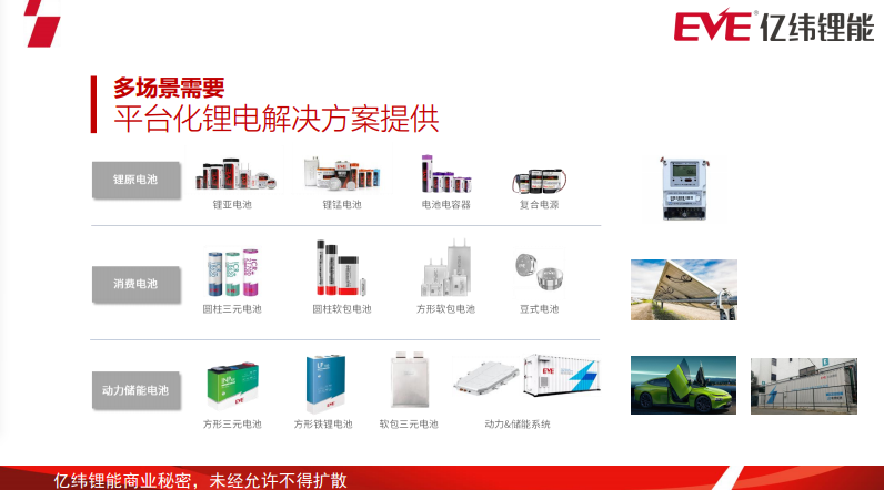 基于實體層、數據層、運營層的場景,億緯從鋰原電池、消費電池和電力儲能電池三個路線提供平臺化的鋰電解決方法。例如鋰亞硫酰氯電池廣泛用于智能電表的數據采集,18650電池用于主動跟蹤光伏板支架供能和磷酸鐵鋰電力儲能電池解決方案。