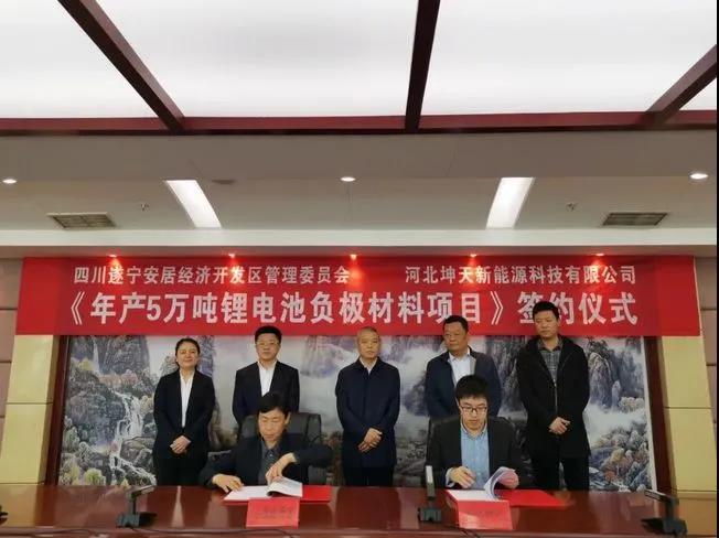 4月23日,四川省遂寧市安居區(qū)經(jīng)濟(jì)開(kāi)發(fā)區(qū)管理委員會(huì)與河北坤天新能源科技有限公司舉行年產(chǎn)5萬(wàn)噸鋰電池負(fù)極材料項(xiàng)目簽約儀式,安居區(qū)鋰電企業(yè)增至26家,為加快推進(jìn)“中國(guó)鋰業(yè)之都”引領(lǐng)區(qū)建設(shè)打下了堅(jiān)實(shí)基礎(chǔ)。