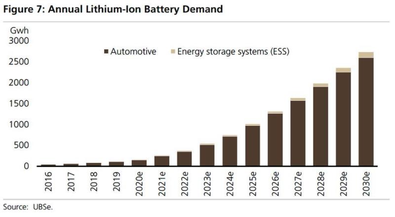 鋰電池汽車和鋰儲(chǔ)電系統(tǒng)將急劇加速鋰的消耗