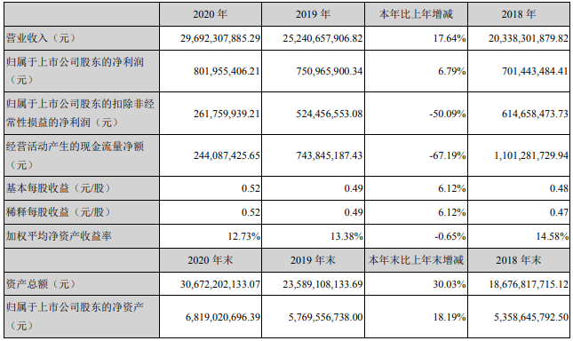 3月15日晚,欣旺達發(fā)布了2020年度報告,2020年公司實現(xiàn)營業(yè)總收入296.92億元,同比增長17.64%;實現(xiàn)歸屬母公司凈利潤8.02億元,同比增長6.79%。