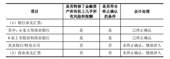 久美股份在公告中表示:“發(fā)行人對應收票據承兌人的信用等級進行了劃分,由信用等級較高銀行承兌的銀行承兌匯票在背書時終止確認,由信用等級一般銀行承兌的銀行承兌匯票以及商業(yè)承兌匯票在背書時繼續(xù)確認應收票據,待到期兌付后終止確認?!?