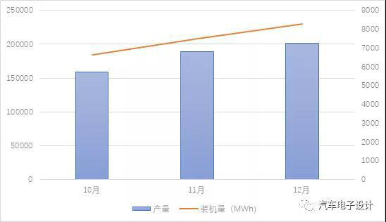 第四季度的新能源汽車(chē)的產(chǎn)量達(dá)到了一個(gè)高潮,10、11月分別從15.8萬(wàn)、18.8萬(wàn)和20.18萬(wàn),對(duì)應(yīng)6.63GWh、7.51GWh和8.29GWh。