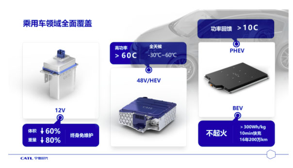 在乘用車領(lǐng)域,我們開發(fā)了12V鋰電池輔助電源,和傳統(tǒng)的鉛酸電池相比重量減少80%、體積減少60%,而且可以終身免維護。我們開發(fā)的48V和HEV用電池包,可以實現(xiàn)60C的高倍率放電。開發(fā)的PHEV電池包,可以實現(xiàn)10C以上倍率的制動能量回收。