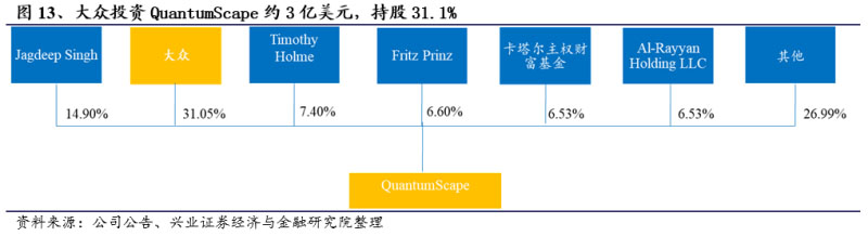 ?國(guó)外企業(yè)方面:2014年,大眾已持有QuantumScape 5%的股份。2018年和2020年兩次增資共約3億美元,現(xiàn)持股31.1%。