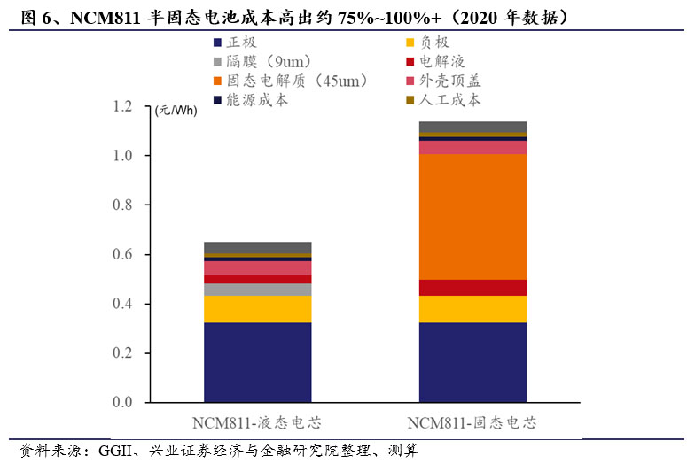?據(jù)測(cè)算,NCM811固態(tài)電池成本相比傳統(tǒng)電池要高出約75%,成本中心在固態(tài)電解質(zhì)成分。
