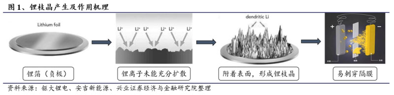 ?鋰枝晶在負(fù)極表明附著,生長(zhǎng)到一定程度會(huì)刺穿隔膜,導(dǎo)致內(nèi)部短路,引發(fā)起火。