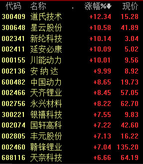 中國儲能網(wǎng)訊:1月12日,鋰電池板塊持續(xù)分化,截至發(fā)稿,星云股份、新綸科技、安納達等5股漲停,道氏技術、中國動力、天齊鋰業(yè)等多股紛紛跟漲。奇信股份、圣陽股份、恩捷股份等多股跌幅居前。