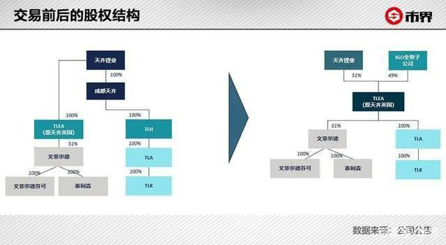 一開始收購(gòu)?fù)瓿蓵r(shí),天齊鋰業(yè)與中投共同持有泰利森100%的股權(quán),但洛克伍德老板在失利后,與蔣衛(wèi)平在新加坡見了一次面,交談之中倆人甚是投機(jī),志同道合。蔣衛(wèi)平隨后決定將泰利森49%的股權(quán)賣給洛克伍德,既可以保住對(duì)泰利森的控制權(quán),又可以解決因收購(gòu)帶來(lái)的巨額貸款,雙方皆大歡喜。