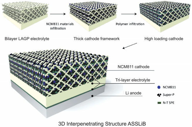 圖5 高NCM811正極材料負載量的三維結構LAGP全固態(tài)鋰離子電池示意圖
