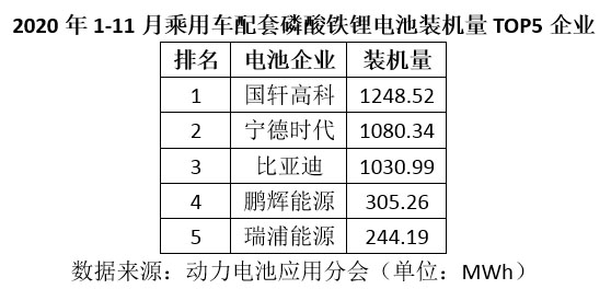 另外,從1-11月上險(xiǎn)數(shù)據(jù)來(lái)看,乘用車(chē)市場(chǎng)磷酸鐵鋰電池裝機(jī)量最高的仍然是國(guó)軒高科,達(dá)1248.52MWh,其次為寧德時(shí)代1080.34MWh,第三為比亞迪1030.99MWh。