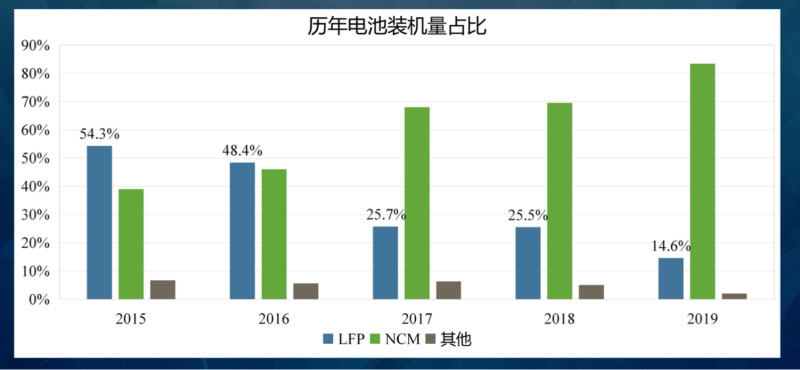 這期間,磷酸鐵鋰電池也受到了很多的質(zhì)疑,一度也成為落后的代名詞,甚至出現(xiàn)了棄磷酸鐵鋰的一個風(fēng)潮。而這種變化的背后也說明,2019年之前,市場對于政策的依賴程度非常高。