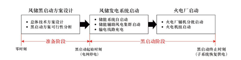 ? 圖2 風(fēng)—儲(chǔ)聯(lián)合系統(tǒng)黑啟動(dòng)過程示意圖