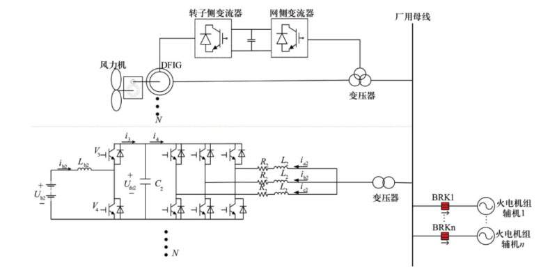 ? 圖5 風(fēng)—儲(chǔ)聯(lián)合系統(tǒng)主電路結(jié)構(gòu)示意圖