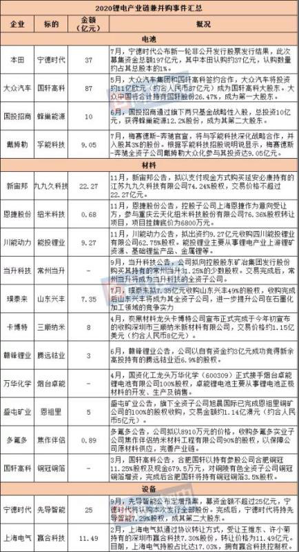 與往年相比,2020年鋰電產業(yè)鏈兼并購事件主要呈現以下特點:
