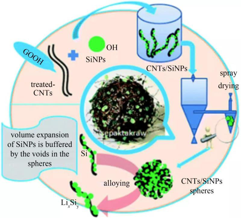 圖8 噴霧干燥法制備一種硅碳納米管(CSs)復(fù)合材料原理