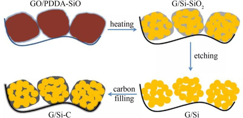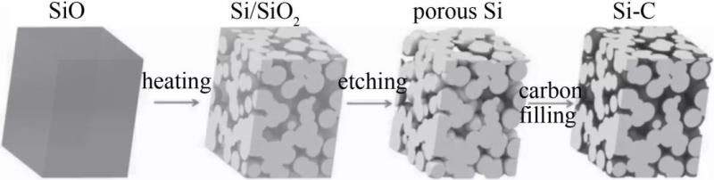 圖3 從SiO前體到Si-C復(fù)合材料的制備過程
