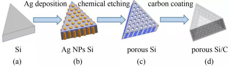 圖2 多孔硅/碳復(fù)合材料的制備原理