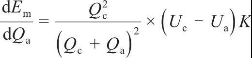 式中,Em、Qc、Qa、Uc、Ua、K分別為電池的能量密度、正極比容量、負(fù)極比容量、正極平均電位、負(fù)極平均電位、正負(fù)極活性材料的質(zhì)量比或體積比(對(duì)整個(gè)電池)?;陔姵氐哪芰棵芏仁?1)對(duì)全電池的比容量進(jìn)行計(jì)算,通過求導(dǎo),可以得到電池總比容量隨負(fù)極比容量增加的變化率大小