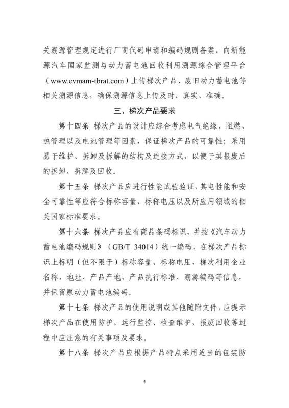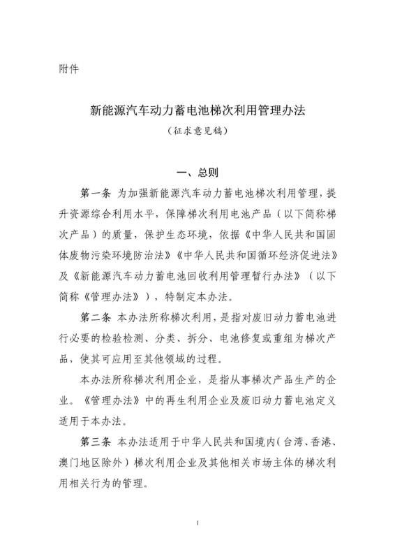 附件:新能源汽車(chē)動(dòng)力蓄電池梯次利用管理辦法(征求意見(jiàn)稿)