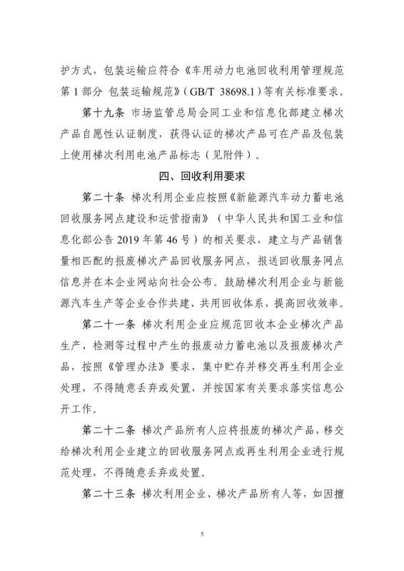 為加強(qiáng)新能源汽車(chē)動(dòng)力蓄電池梯次利用管理,提升資源綜合利用水平,保障梯次利用電池產(chǎn)品的質(zhì)量,我們組織編制了《新能源汽車(chē)動(dòng)力蓄電池梯次利用管理辦法》?,F(xiàn)將征求意見(jiàn)稿向社會(huì)公開(kāi)征求意見(jiàn),如有意見(jiàn)或建議,請(qǐng)于2020年11月8日前反饋工業(yè)和信息化部節(jié)能與綜合利用司。
