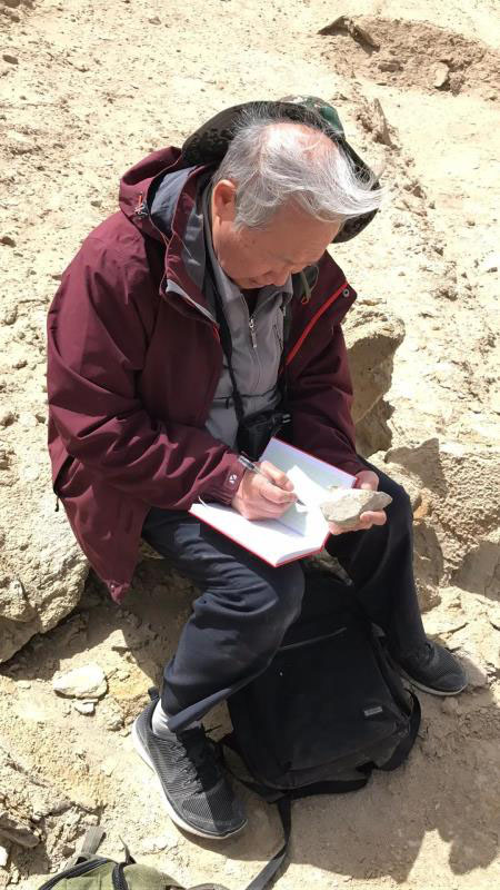 一位老人以樹枝為杖,艱難行走在思茅盆地雜草叢生的小徑,鄭綿平的學生張雪飛應采訪邀請發(fā)來這一照片,“這是鄭院士正帶我們做云南鉀鹽科考項目”,她解釋說,“時間是2020年1月,春節(jié)前夕”。只有一行人背影的模糊小照,讓記者聯(lián)想起27年前在西藏采訪時第一次見到鄭院士的場景——被高原風蝕成的經(jīng)典藏民面孔和難以聽懂的福建口音。86歲了,還在出野外!