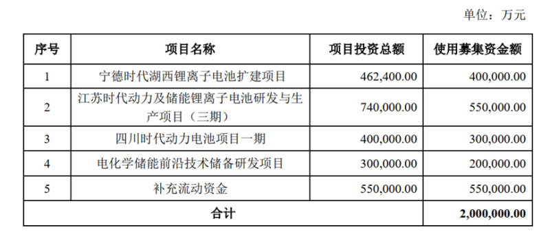 據(jù)寧德時代此前發(fā)布的《非公開發(fā)行股票預案》估計,此次募投的前三個項目預計產(chǎn)生年收入約343億元,凈利潤約30億元。